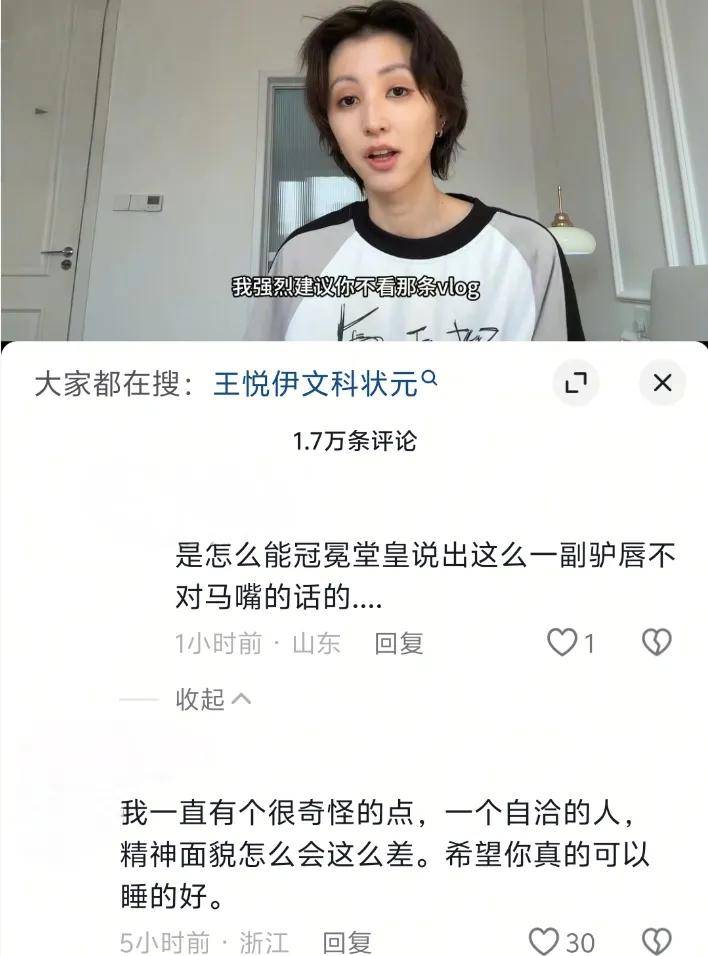 目前王悦伊各大平台账号评论区都有了控不住的趋势,不止一位网友质疑她过于高高在上,态度傲慢看不起普通人,更是扒出王悦伊过往精日言论,认为她应该被封杀。