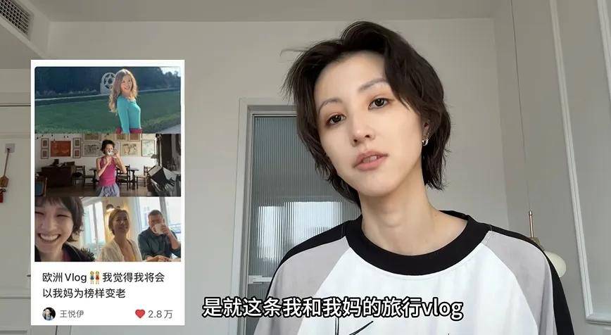 最近30岁女星王悦伊因为一条母女同游vlog受到外界关注,她拍摄的vlog标题名为“我觉得我将会以我妈为榜样变老”,透露了自己原生家庭情况,意外引发了讨论。