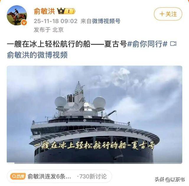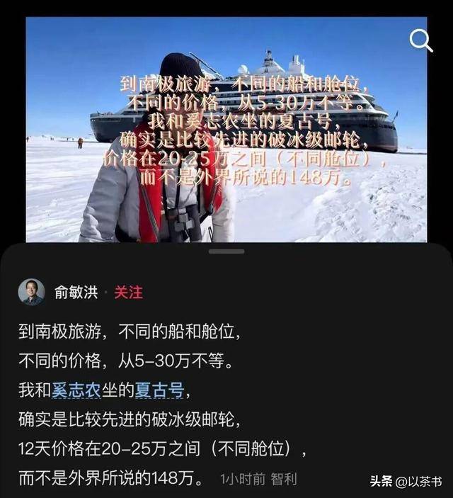 与此同时,他在社交平台上连续发布了十几条南极旅行的视频,分享他在乘坐“夏古号”邮轮上的所见所闻。