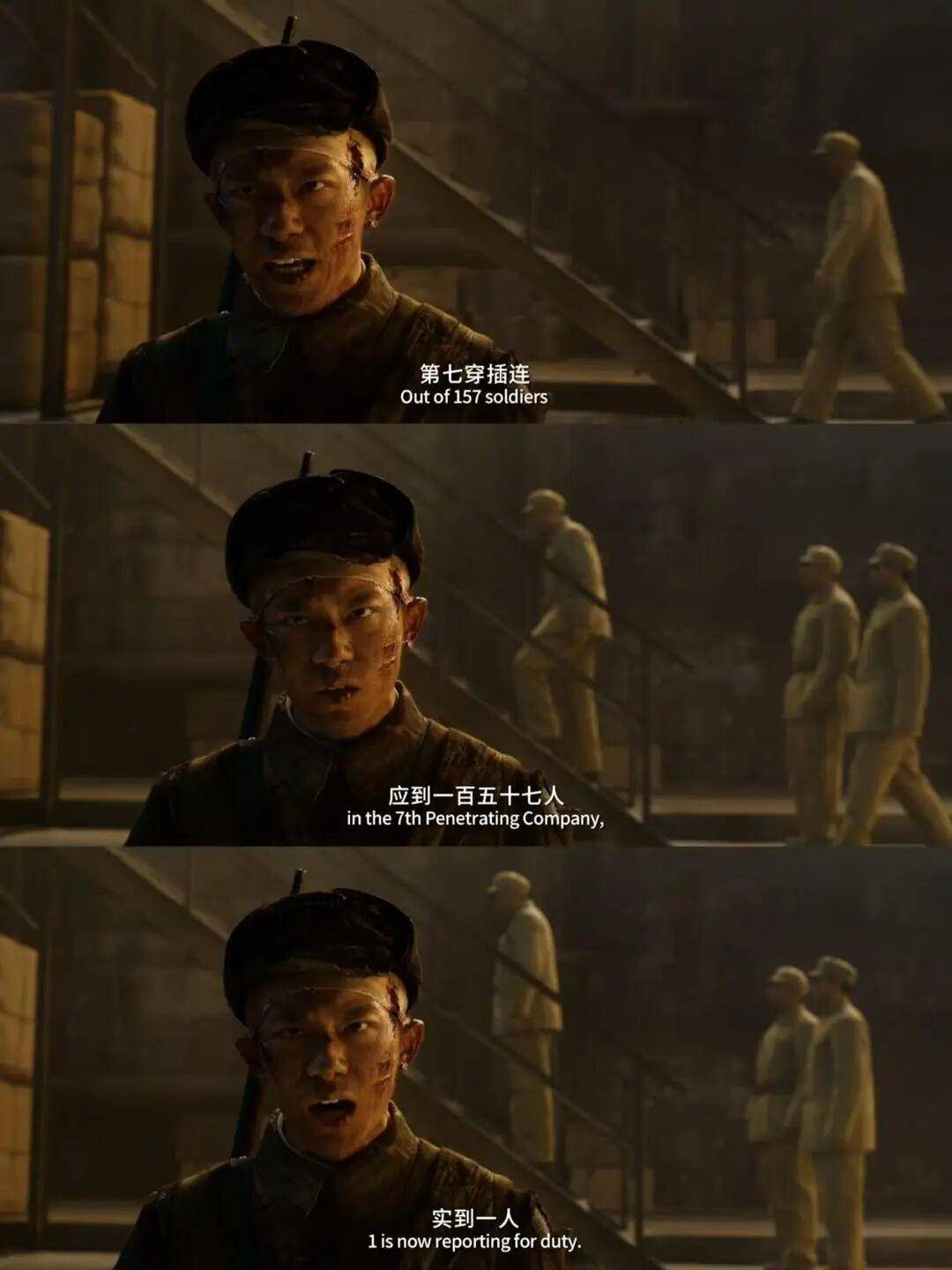 归来的这三名士兵代表,便是《长津湖》系列(兰晓龙原著名《冬与狮》)里的伍万里(易烊千玺 饰)。全连苦战而亡,只有他幸存下来。他的愿望正是“恢复七连建制”。