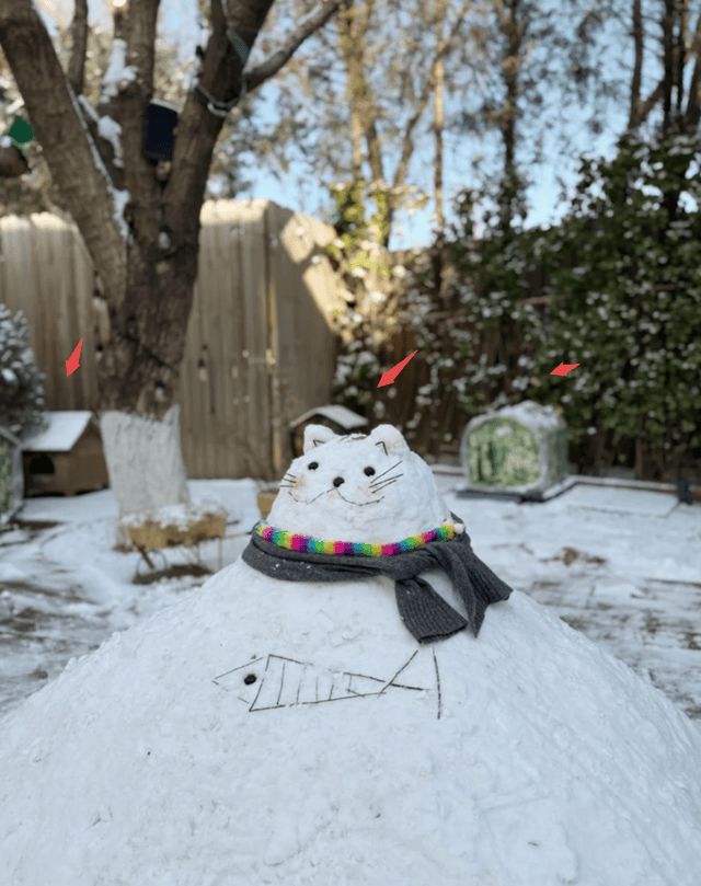 除了姚晨堆的雪猫八顿外,还有网友注意到别墅院子里搭好的猫窝,而且,一些猫窝上还有名字,每个猫窝收拾的都很干净,看着也很暖和舒适。