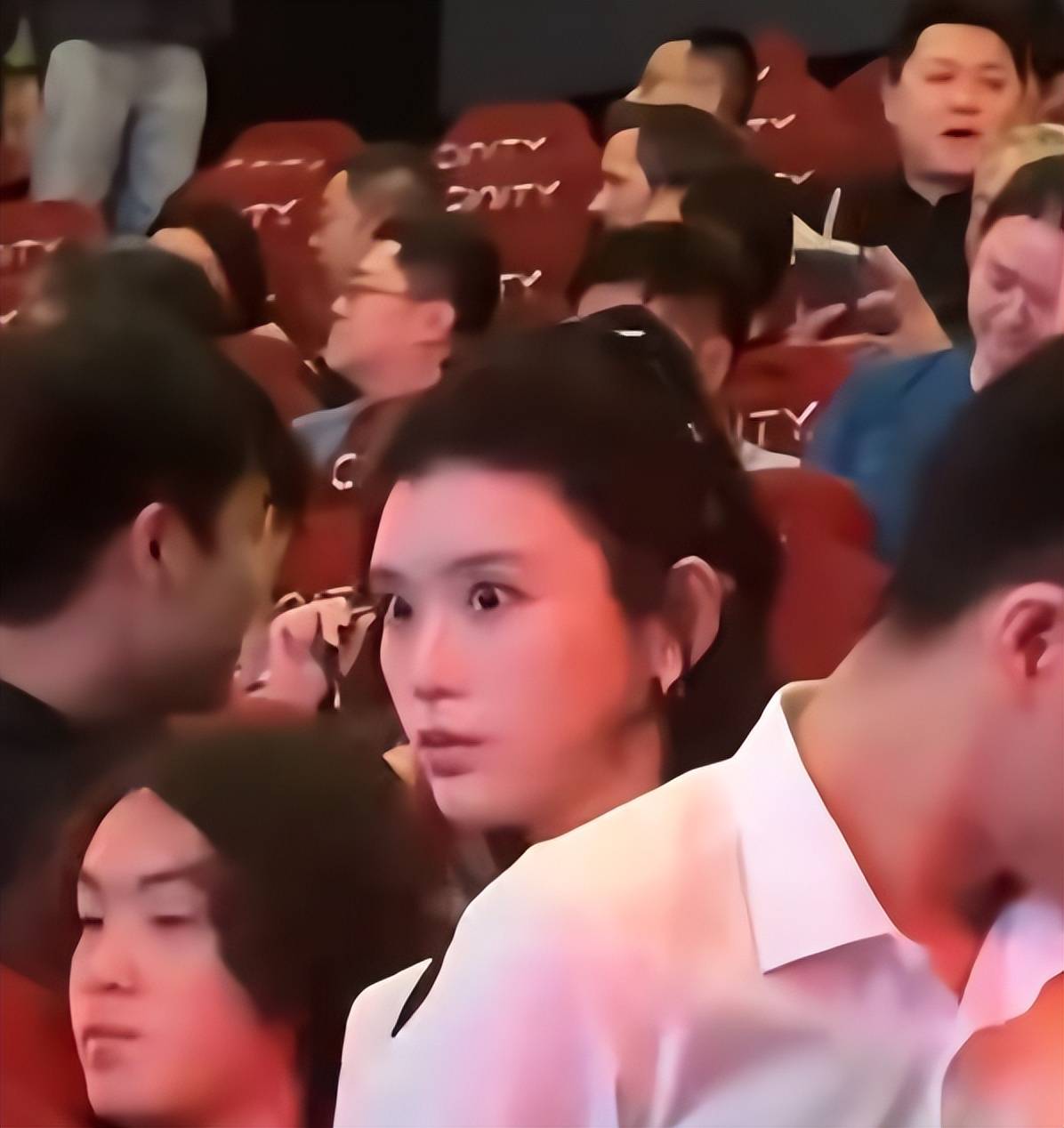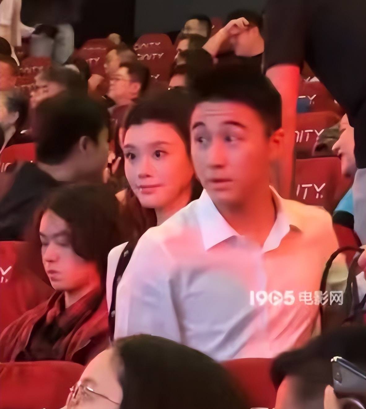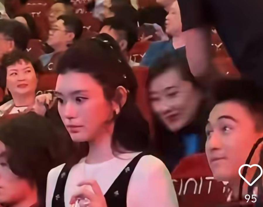 奚梦瑶以观众的身份参加的首映礼,在模糊的灯光下,也能看出状态还不错。
