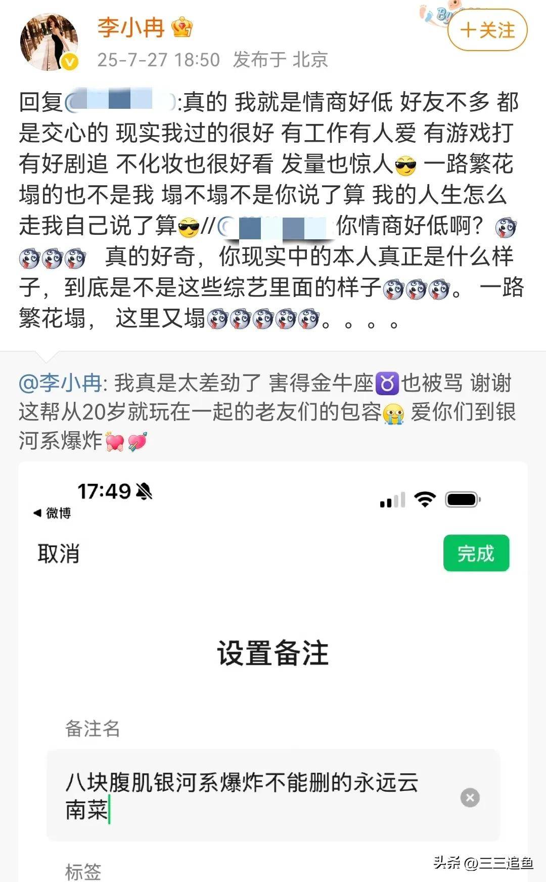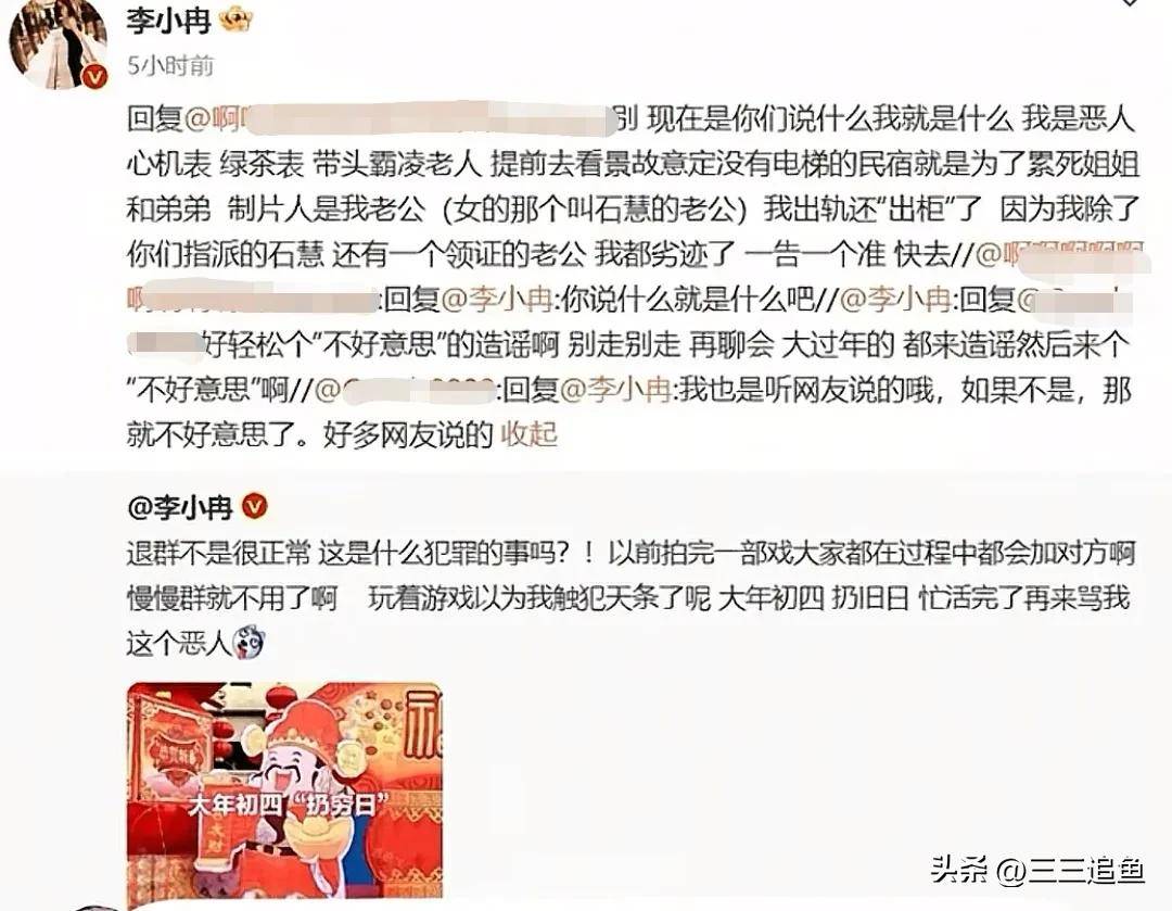 综艺结束后,憋屈的李小冉甚至直接和网友“对线”起来,双方吵得不可开交。在那些纷纷扰扰的引领下,她和刘晓庆的矛盾似乎彻底无法调和了。
