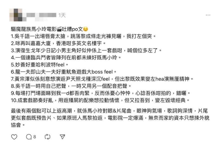 此外,饰演马小玲的吴千语成了网友围攻的对象,不仅被指长腿不如万绮雯,更是缺乏演技,演不出马小玲坚强又外冷内热的特质!
