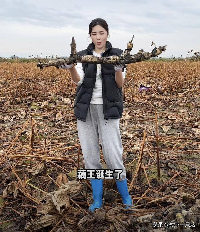 曾黎在挖藕期间没有计较土地里的黑泥弄到手上身上,只管专心挖藕,爽朗不做作的样子让人分外喜欢。