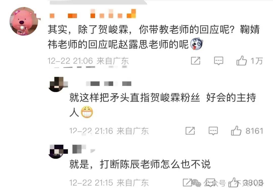 网友都在质问她,明明失误那么多,为什么“选择性道歉”,只提到贺峻霖?这不是在给贺峻霖引战嘛。
