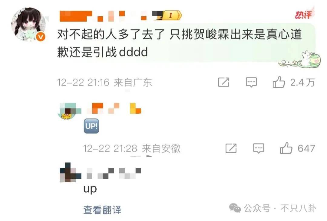 话说到这里都没问题,问题出在——她只给贺峻霖一个人道歉了。
