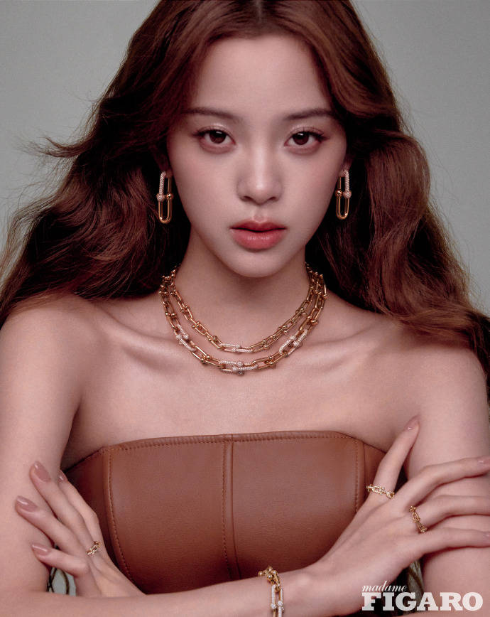 欧阳娜娜穿褐色抹胸秀纤细双臂。