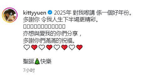 小仪发文写道:“2025年对我来说是一个好年份。谢谢你,让我人生下半场更精彩。也想与爱我的你们分享,谢谢你们满满的祝福。
