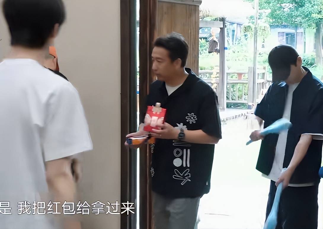 黄磊听闻声音,从厨房赶了过来,一边接过马頔的喜糖,一边叫工作人员拿来自己早就准备好的红包。