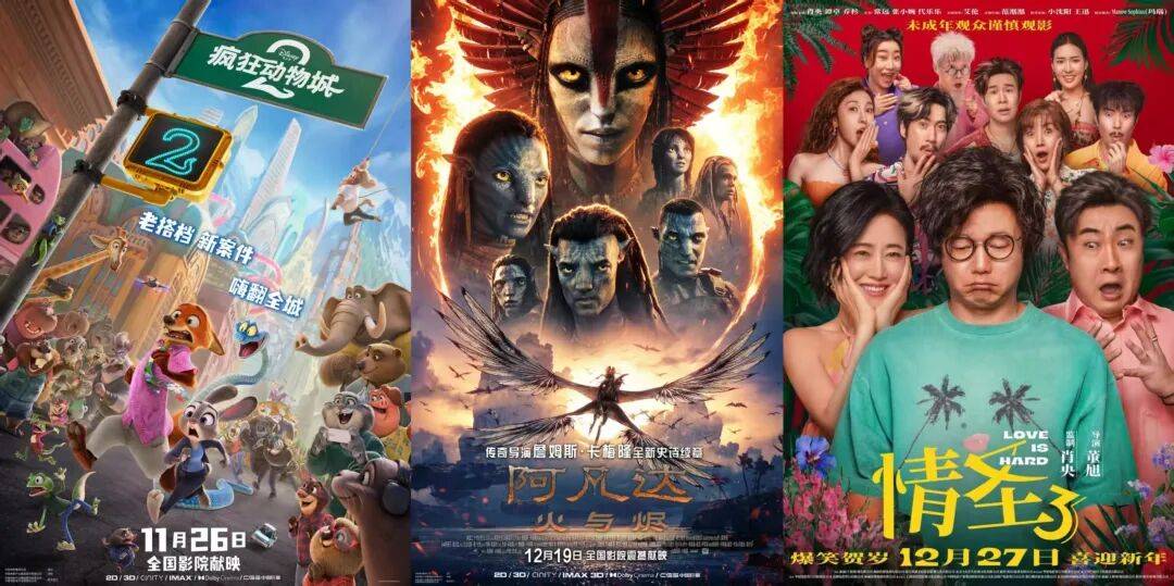 当然,至于《疯狂动物城2》和《阿凡达:火与烬》两部好莱坞巨制,虽然上映已有一段时间,但余威仍在,很可能将继续在元旦档大盘中占据头部份额;而上周公映的爱情喜剧《情圣3》,也可能在元旦档发挥一定能量。