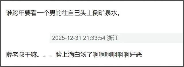 这边有直播事故,另一边江苏卫视薛之谦直接送上话题,唱嗨了自己往头上倒矿泉水,结果直接脱妆,网友吐槽脸上都流汤了,这是直播啊!