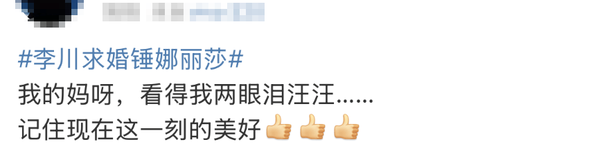 2025年12月31日,在浙江卫视跨年晚会上,男演员李川现场用满前备箱的玫瑰花海求婚锤娜丽莎,求婚成功后李川称为了这一刻已经准备了很久,锤娜丽莎当场惊喜落泪。